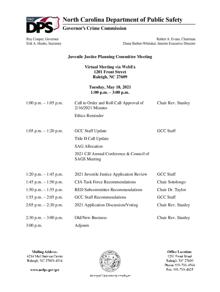 Get the free files.nc.govJJPC-Agenda-2Governors Crime Commission Juvenile Justice Planning ...