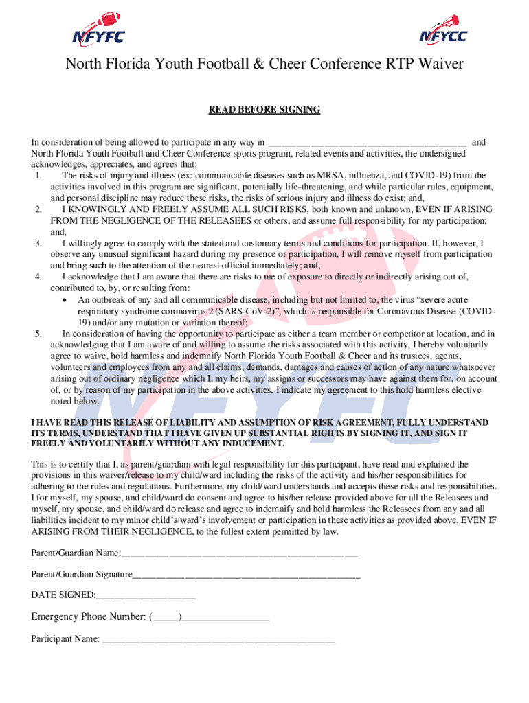 Get the free North Florida Youth Football & Cheer Conference RTP Waiver