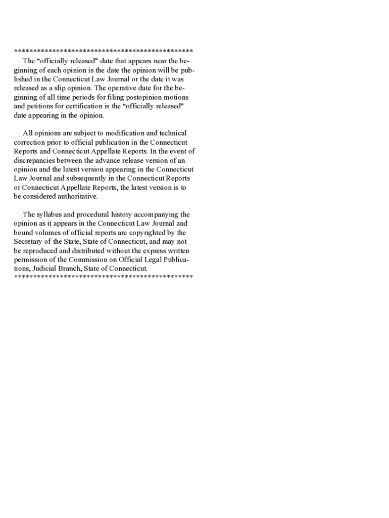 *********************************************** The officially released date that appears near the beginning of each opinion is the date the opinion will be published in the Connecticut Law Journal