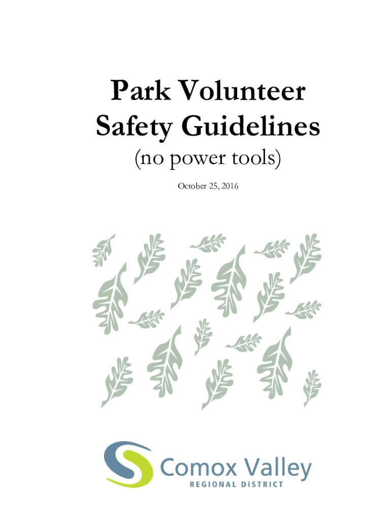 Park Volunteer Safety Guidelines (no power tools) October 25, 2016PARK VOLUNTEER SAFETY GUIDELINES2PARK VOLUNTEER SAFETY GUIDELINES The regional district does not warrant the guidelines which should