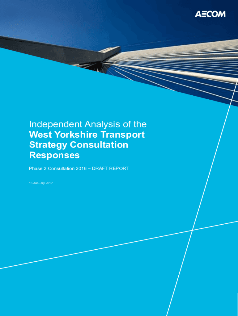 Independent Analysis of the West Yorkshire Transport Strategy Consultation Responses Phase 2 Consultation 2016 DRAFT REPORT 16 January 2017West Yorkshire Transport Strategy ConsultationAECOM2Quality