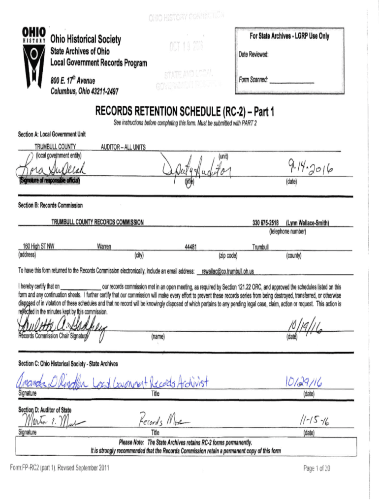 HI ... \' For State Archives GRP Use Only. H I S T Q I Y Ohio Historical Society State Archives of Ohio Local Government Records Program H I ST0 E WWI \' Date Reviewed:800 E. 17th Avenue Columbus,