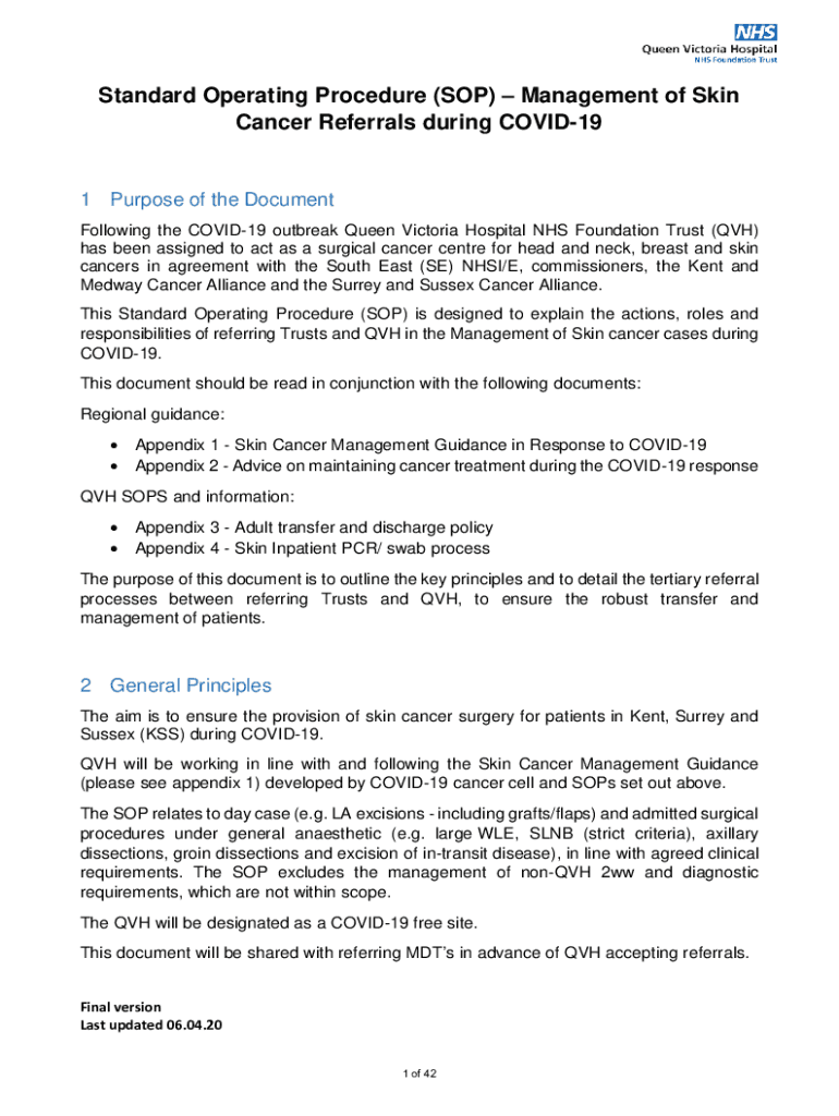Standard Operating Procedure (SOP) Management of Skin Cancer Referrals during COVID191 Purpose of the Document Following the COVID-19 outbreak Queen Victoria Hospital NHS Foundation Trust (VH) has