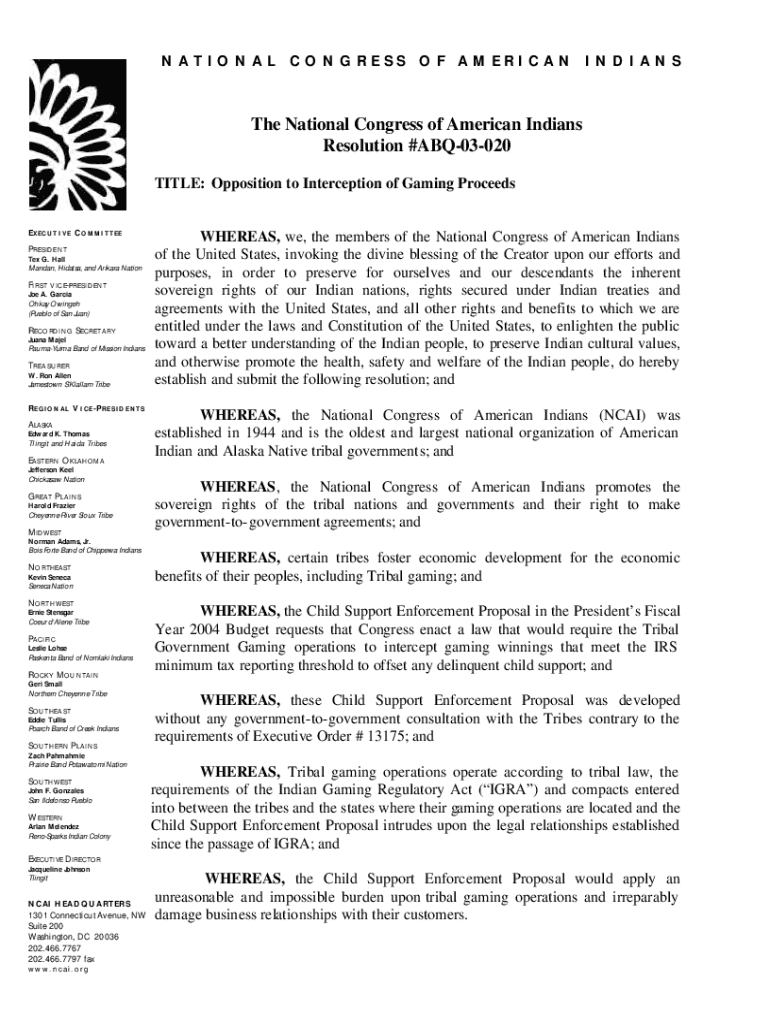 Get the free The National Congress of American Indians Resolution #ABQ-03-009