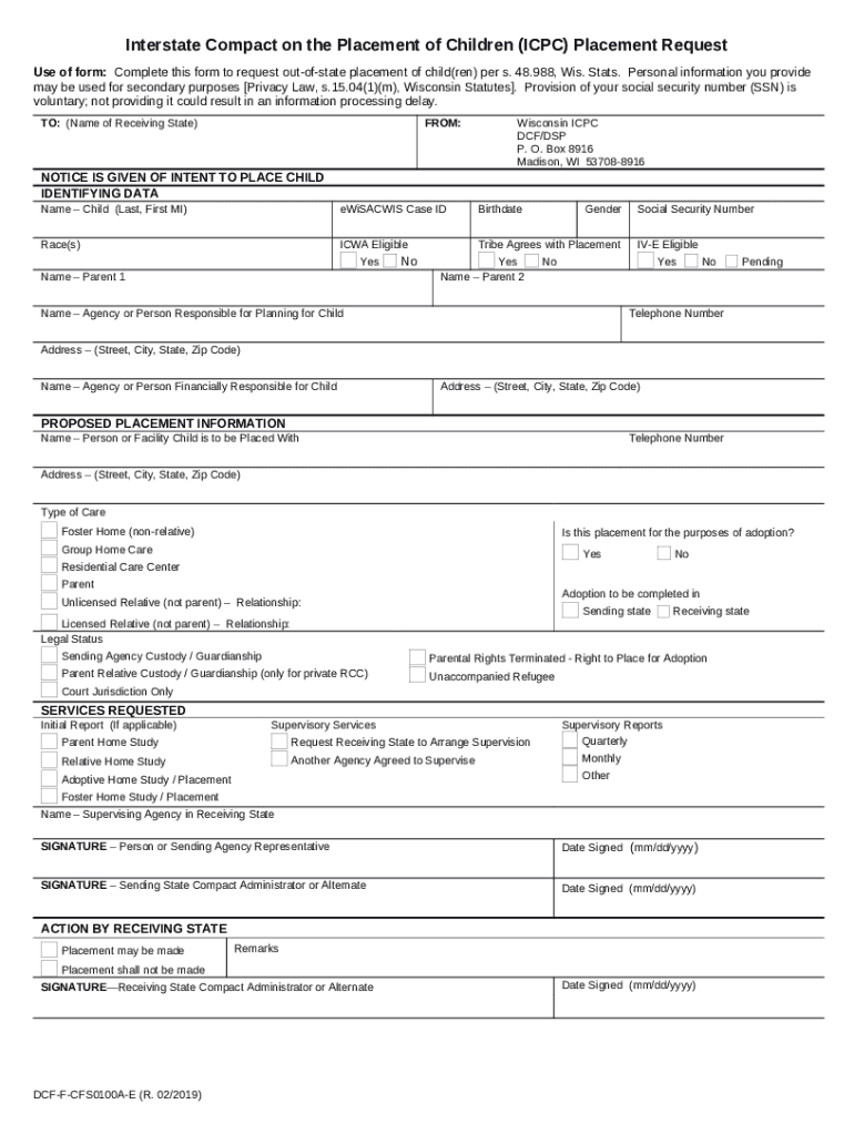 Instructions for the form dbhdd.georgia.govsitesdfcsINTERSTATE COMPACT ON THE PLACEMENT OF CHILDREN REQUEST - dcf wisconsin