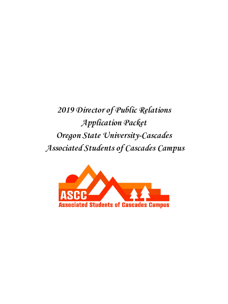 2019 Director of Public Relations Application Packet Oregon State University Cascades Associated Students of Cascades Campus What is the SCC Executive Board? The SCC Executive Board is the officially