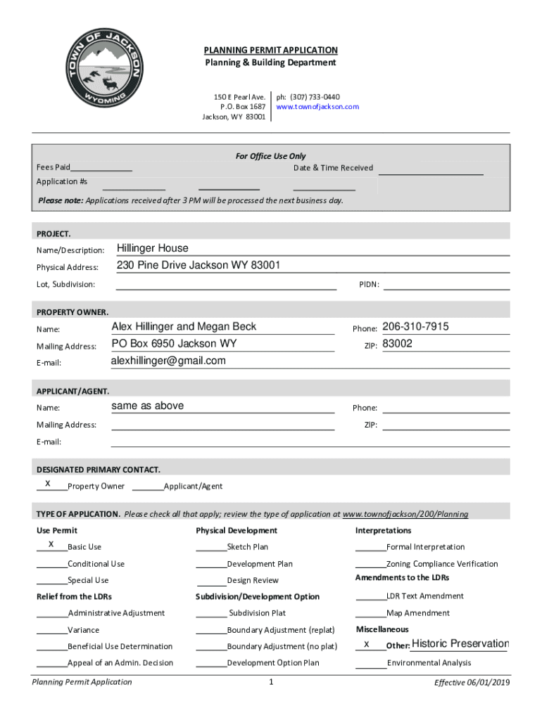 TOWN OF JACKSON PLANNING & BUILDING DEPARTMENT TRANSMITTAL MEMO Town of JacksonPublic Works/Engineering Building Title Company Town Attorney PoliceEngineer Surveyor Nelson Assessor Clerk and Recorder