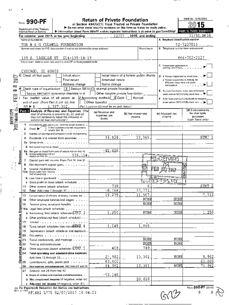 .,.OMB No 15450052Return of Private Foundation990PFFormDepartment of the Treasury i Internal Revenue Serve ce15or Section 4947(a)(1) Trust Treated as Private Foundation ^ Do not enter social security
