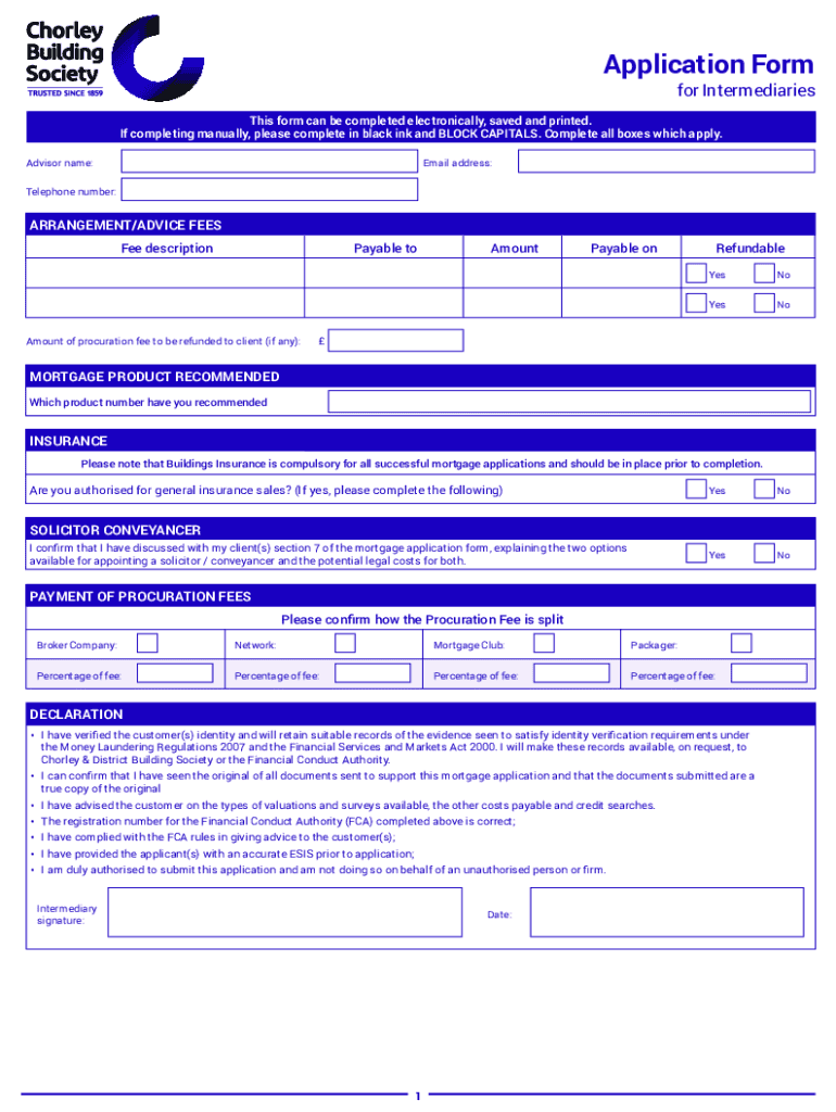 Application Form for IntermediariesThis form can be completed electronically, saved and printed. If completing manually, please complete in black ink and BLOCK CAPITALS. Complete all boxes which apply.
