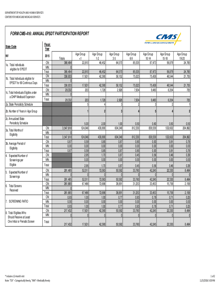 Get the free DEPARTMENT OF HEALTH AND HUMAN FORM CMS-416: ANNUAL EPSDT PARTICIPATION ... - dhcfp nv