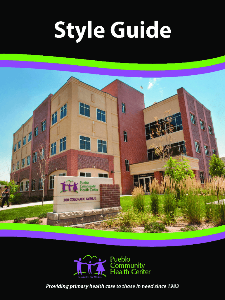 Contents Pueblo Community Health Center, Inc. Brand3Color Palette3Typography4Embroidery4Electronic Media ___ 5 Print Materials Policy8Marketing Materials & Public Relations Policy17Social Media Policy19For