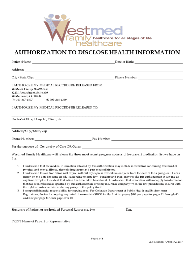 Get the free Authorization to Disclose Personal Information From WESTMED.docx