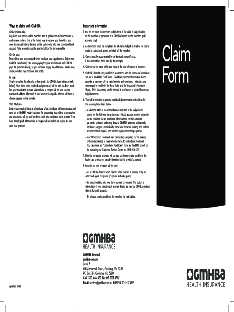 What is wwwsignnowcom20034-gmhba-claim-formgmhba claim form?