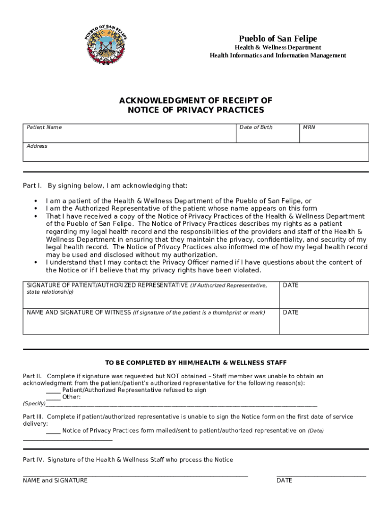 How to fill out NPP acknowledgment - San Felipe Pueblo