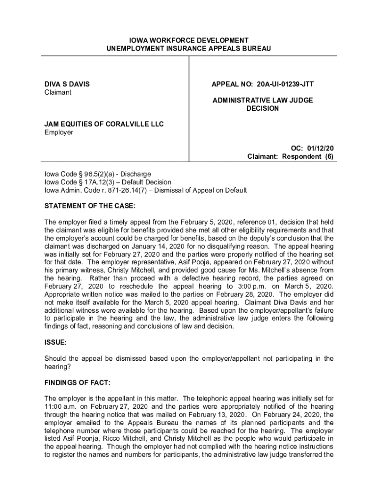 Get the free IOWA WORKFORCE DEVELOPMENT UNEMPLOYMENT INSURANCE APPEALS APPEAL 22A-UI ...