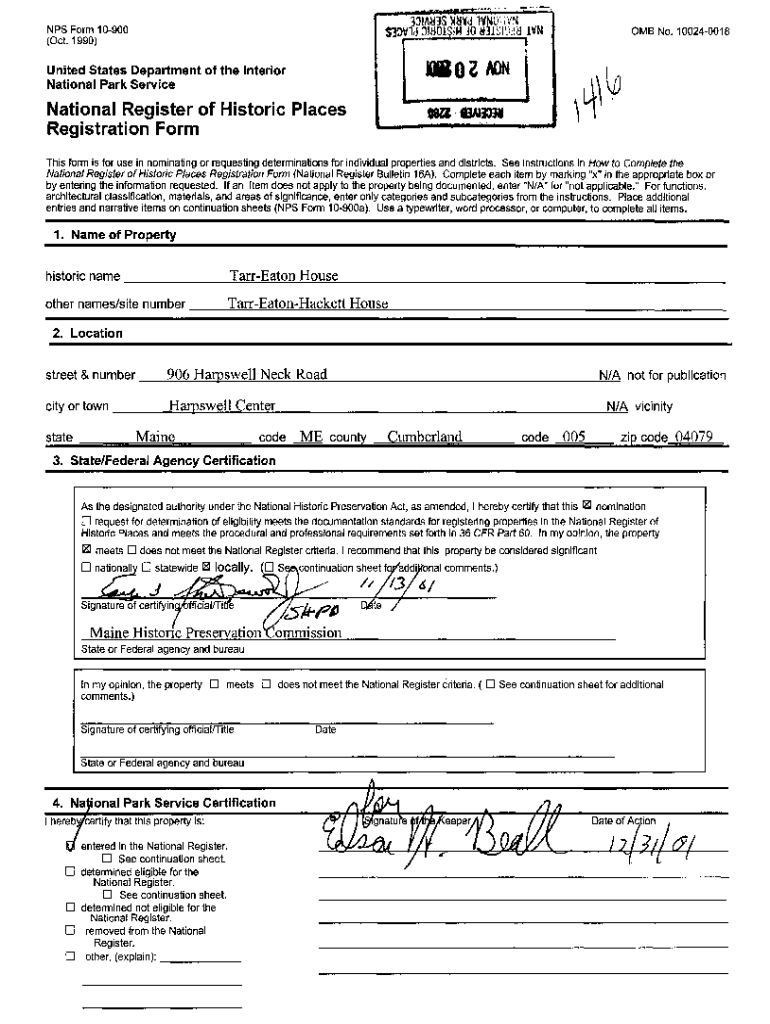 40NPS Form 10900 (Oct. 1990)United States Department of the Interior National Park ServiceNBOZADNNational Register of Historic Places Registration Form083 OAI33MIVNOMB No. 100240018This form is for