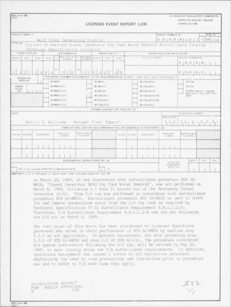 _ _ _ _ _ _ _ _ _ _ _ _ __ _ _ _ _ _ _ _ _ .1.gear 3sb, U.S. NUCLEAR REGULATORY COMMITS\'ON APPROVED OMB NO 3150 4104 EXPIRES. 8/31/g8LICENSEE EVENT REPORT (LER) FACILITY NAME (110 | 5 | 0 | 0 | 0