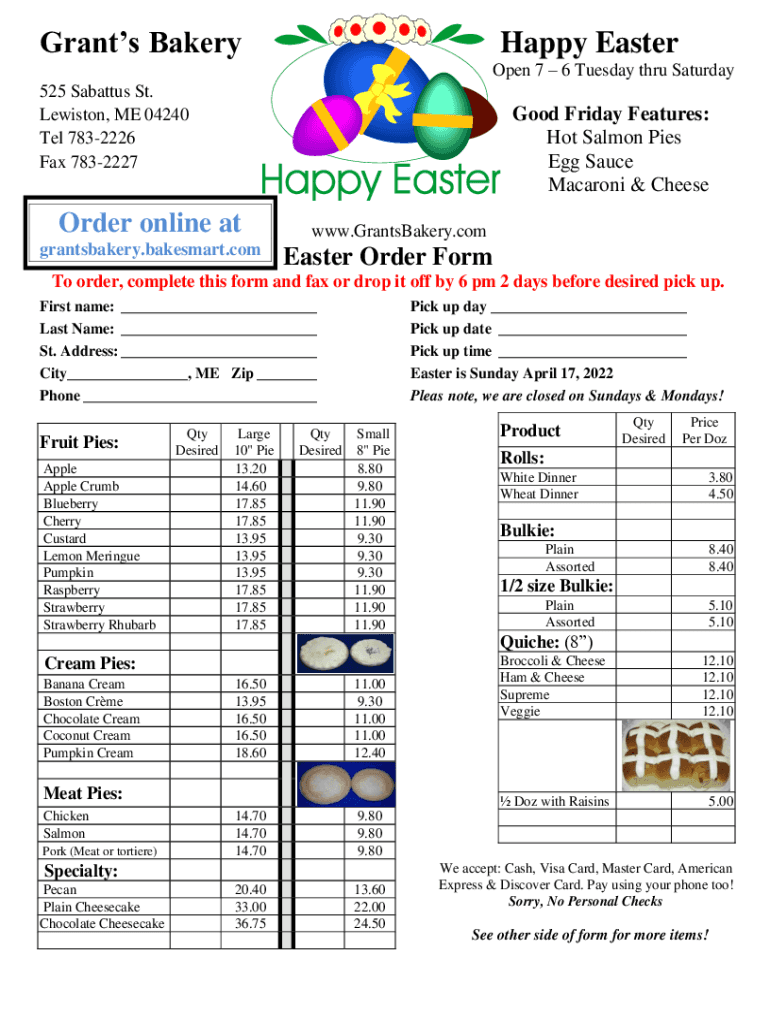 Get the free Online Grants Bakery Happy Easter Fax Email Print - pdfFiller