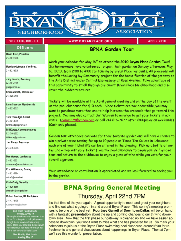W W W. B R Y AN P L AC E. O R VOL XXIX, ISSUE 4APRIL 2010Officers $ % \” # $% % $% & %&\'\” # $% \” $\'%*+()! \” !*& %\” # $% \” $% % ((\')(\'*+))& \” *\'# ! \”$% %#.$, !/$\” +\'\”