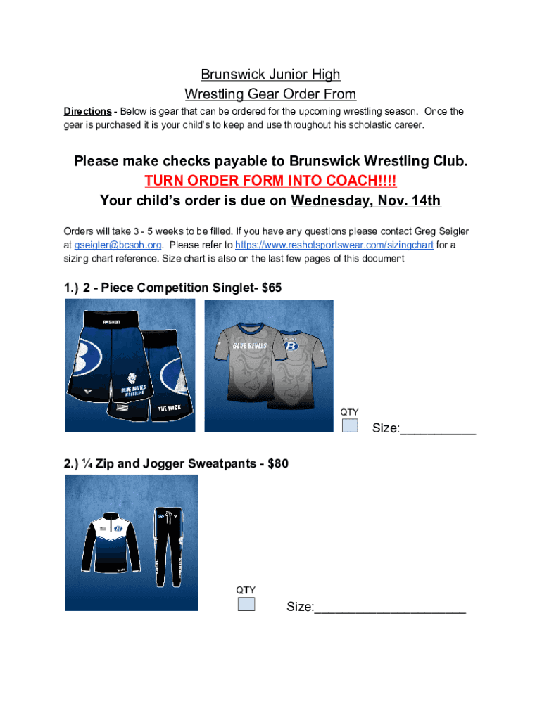 Brunswick Junior High Wrestling Gear Order From Directions Below is gear that can be ordered for the upcoming wrestling season. Once the gear is purchased it is your children to keep and use throughout