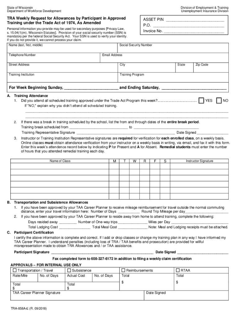 How to fill out tra-858a tra weekly request