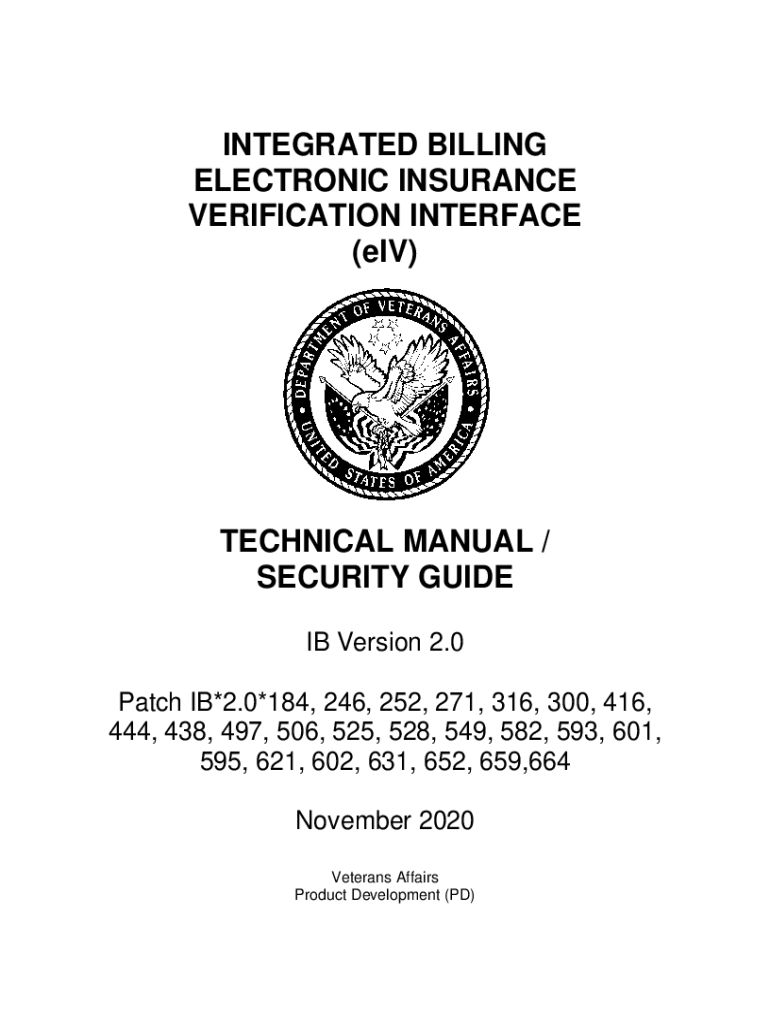 INTEGRATED BILLING ELECTRONIC INSURANCE VERIFICATION INTERFACE (EIC)TECHNICAL MANUAL / SECURITY GUIDE IB Version 2.0 Patch IB×2.0×184, 246, 252, 271, 316, 300, 416, 444, 438, 497, 506, 525, 528,