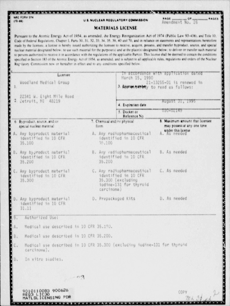 Get the free Matls licensing package for Amend 26 to License 21-13255-01 for Woodland Medical Gro...
