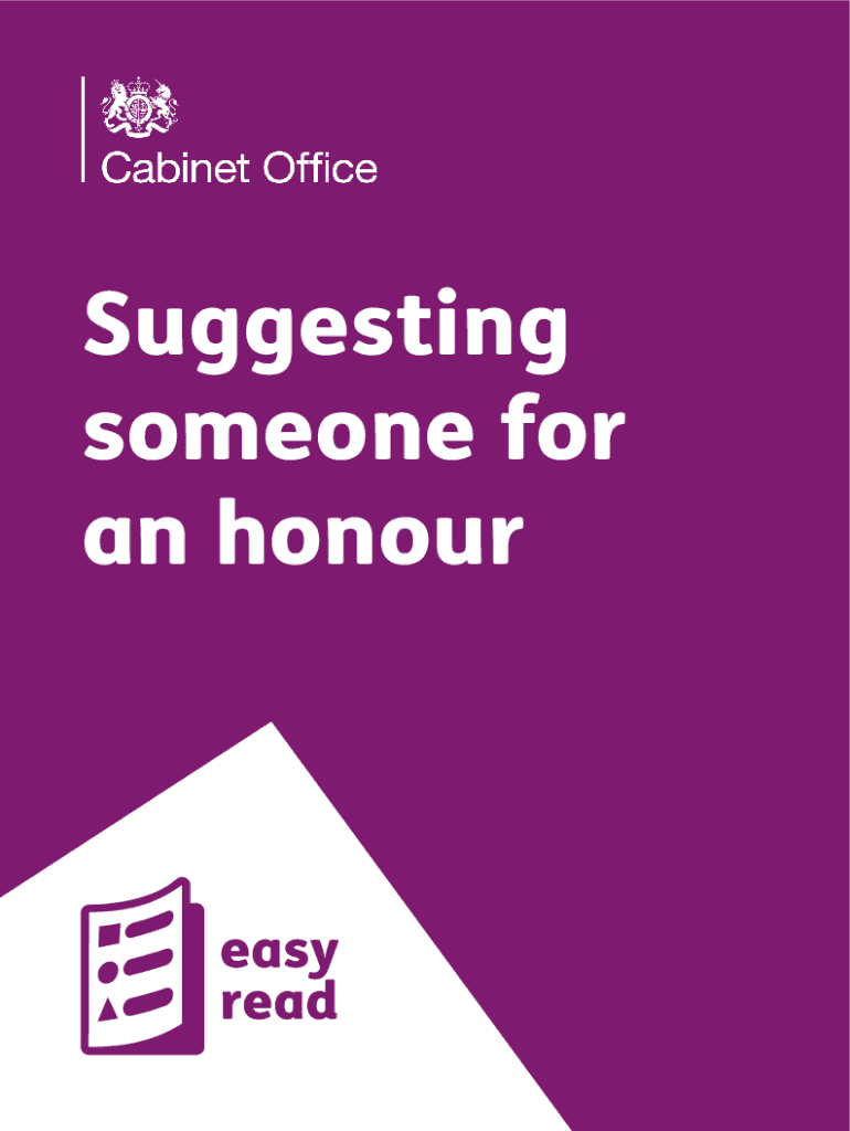 Suggesting someone for an honourContents 4Introduction5Suggesting someone for an honour6How does someone get an honor?10How long does it take?12Awards for organisations13Being fair to everyone14More