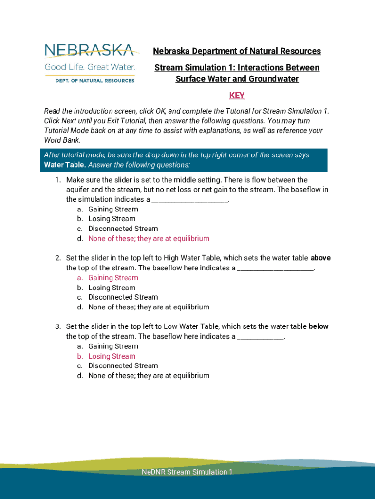 Get the free Nebraska Department of Natural Resources Stream Simulation 1 ...
