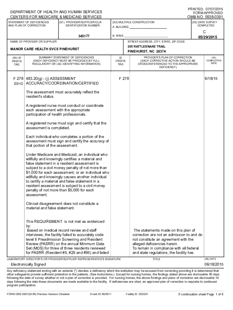 PRINTED: 07/07/2015 FORM APPROVEDDEPARTMENT OF HEALTH AND HUMAN SERVICES CENTERS FOR MEDICARE & MEDICAID SERVICES STATEMENT OF DEFICIENCIES AND PLAN OF CORRECTION(X1) PROVIDER/SUPPLIER/CIA IDENTIFICATION