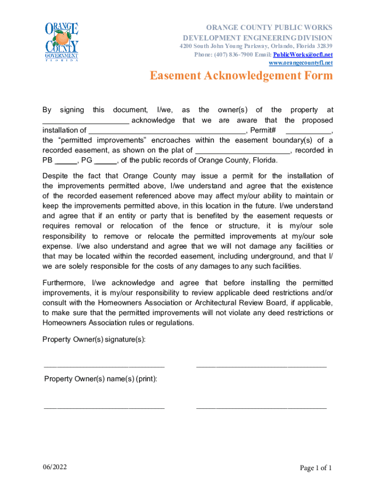 Obtain the FL Easement Acknowledgement Form from the official Orange County website or local government office.