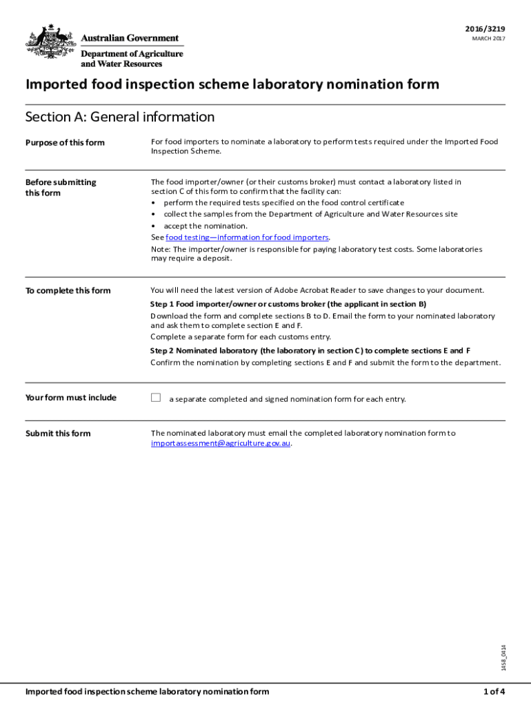 2016/3219 MARCH 2017Imported food inspection scheme laboratory nomination form Section A: General information Purpose of this former food importers to nominate a laboratory to perform tests required