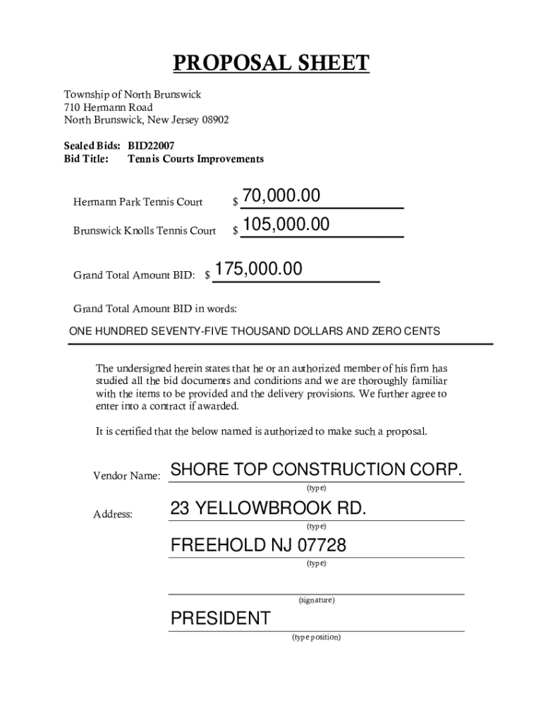 Resolution: ___ A RESOLUTION AUTHORIZING THE AWARD OF CONTRACT BID22007 TO SHORE TOP CONSTRUCTION CORP. FOR THE IMPROVEMENTS OF TENNIS COURTS WHEREAS, Hermann Park and Brunswick Knolls Park both include