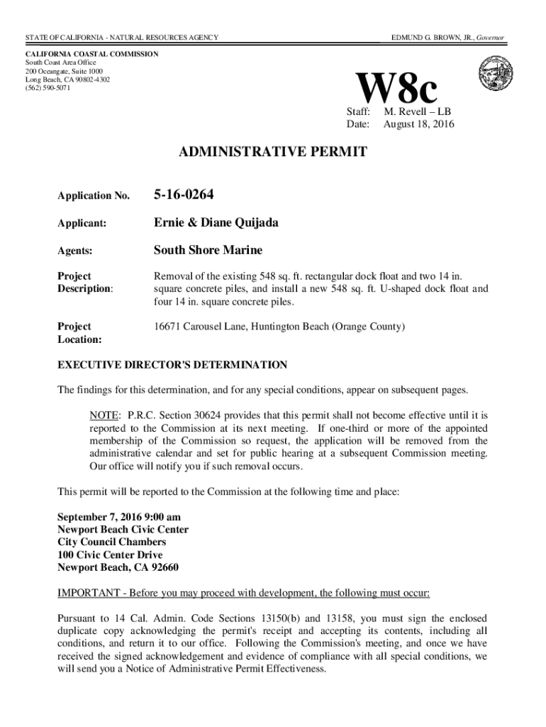 Get the free ADMINISTRATIVE PERMIT 5-16-0264 - documents coastal ca
