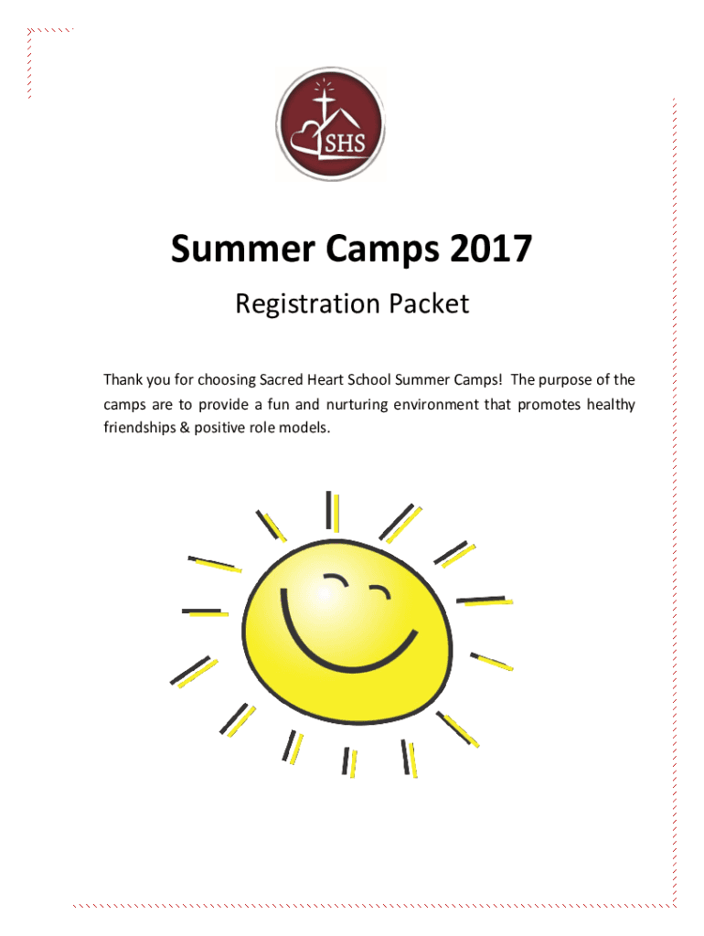 Summer Camps 2017 Registration Packet Thank you for choosing Sacred Heart School Summer Camps! The purpose of the camps are to provide a fun and nurturing environment that promotes healthy friendships