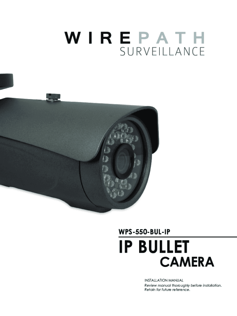 The wirepath surveillance wps-550-dom-ip manual is a guide for installing and configuring the WPS-550-DOM-IP surveillance camera system.