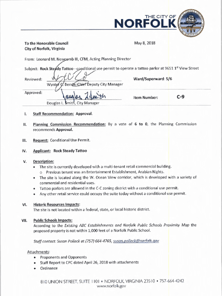 City of Norfolk, Virginia III, CFM, Acting Planning DirectorFrom: Leonard M. Subject: Rock Ste Dy Tattoo additional use permit to operate a tattoo parlor at 9651