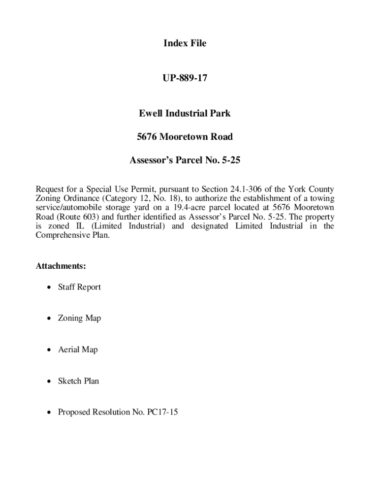 Get the free Index File UP-889-17 Ewell Industrial Park 5676 Mooretown Road ...