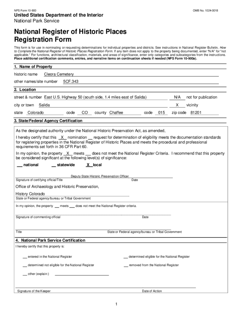 NPS Form 10900OMB No. 10240018United States Department of the Interior National Park ServiceNational Register of Historic Places Registration Form This form is for use in nominating or requesting