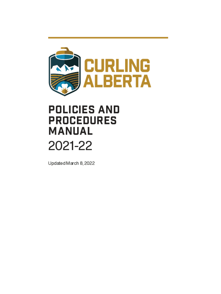 POLICIES AND PROCEDURES MANUAL202122 Updated March 8, 2022Curling Alberta Policies and Procedures Manual 202122Page imitable OF CONTENTS Code of Conduct and Ethics ...........................................................................................................
