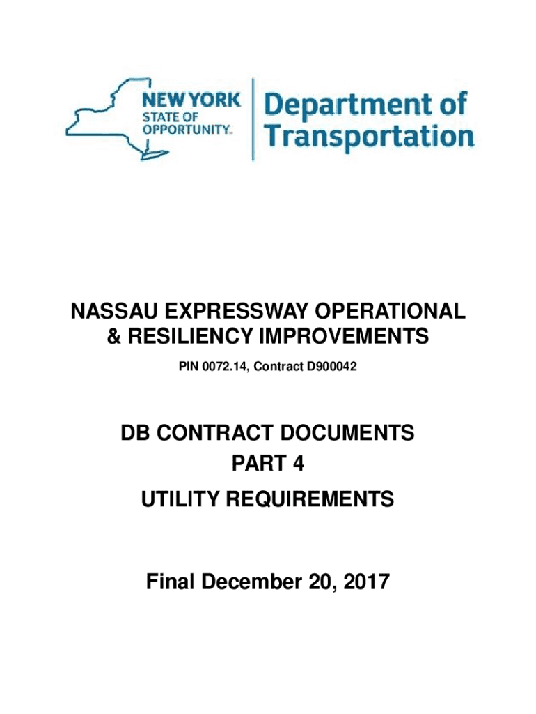NASSAU EXPRESSWAY OPERATIONAL & RESILIENCY IMPROVEMENTS PIN 0072.14, Contract D900042DB CONTRACT DOCUMENTS PART 4 UTILITY REQUIREMENTSFinal December 20, 2017This page is intentionally left blank.