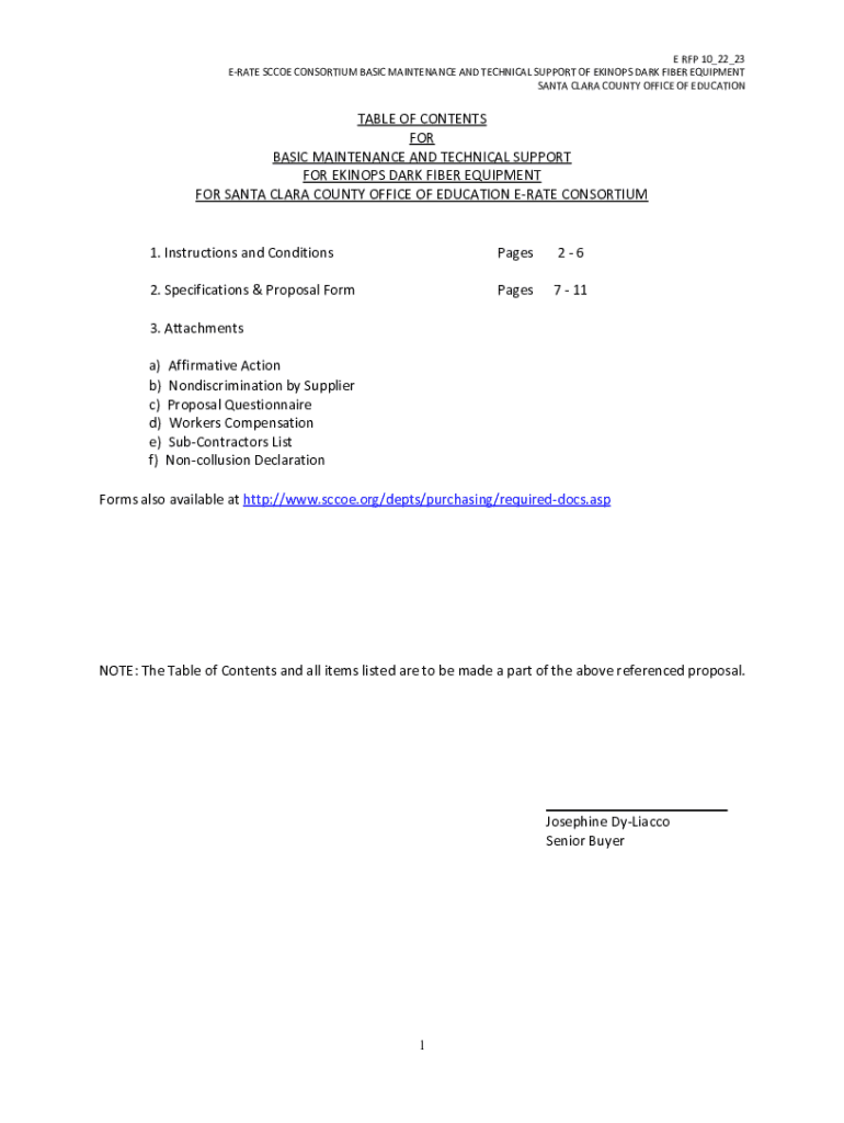 E RFP 10_22_23 RATE SC COE CONSORTIUM BASIC MAINTENANCE AND TECHNICAL SUPPORT OF KINDS DARK FIBER EQUIPMENT SANTA CLARA COUNTY OFFICE OF EDUCATIONAL OF CONTENTS FOR BASIC MAINTENANCE AND TECHNICAL