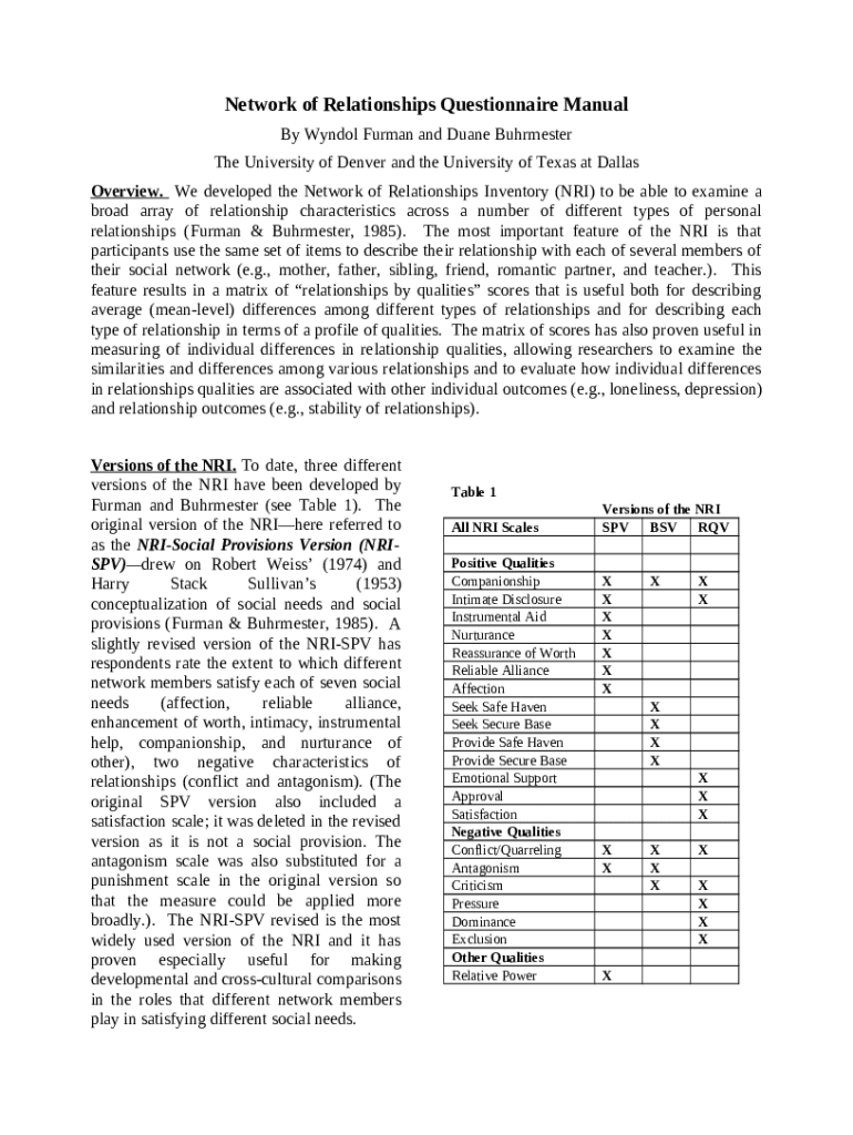 What is journals.sagepub.comdoi10Methods and Measures: The Network of Relationships Inventory ... Form?
