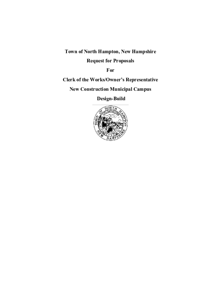 Town of North Hampton, New Hampshire Request for Proposals For Clerk of the Works/Owners Representative New Construction Municipal Campus DesignBuildThe North Hampton Select Board is requesting proposals