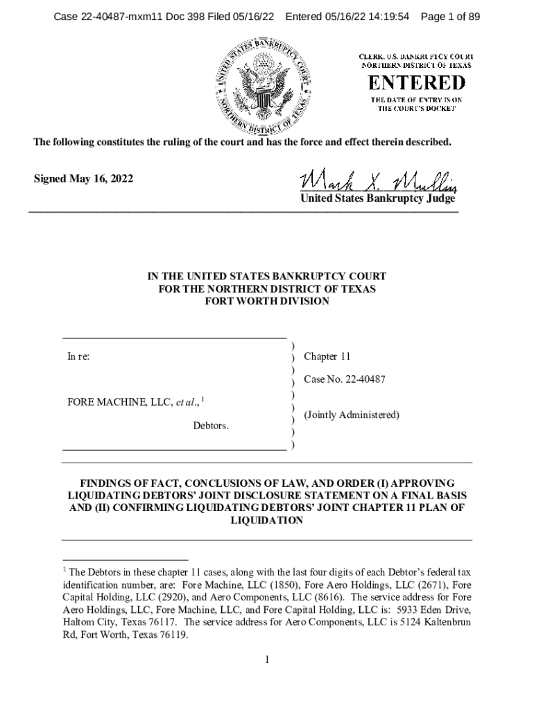 Case 2240487mxm11 Doc 398 Filed 05/16/22Entered 05/16/22 14:19:54Page 1 of 89The following constitutes the ruling of the court and has the force and effect therein described. Signed May 16, 2022___