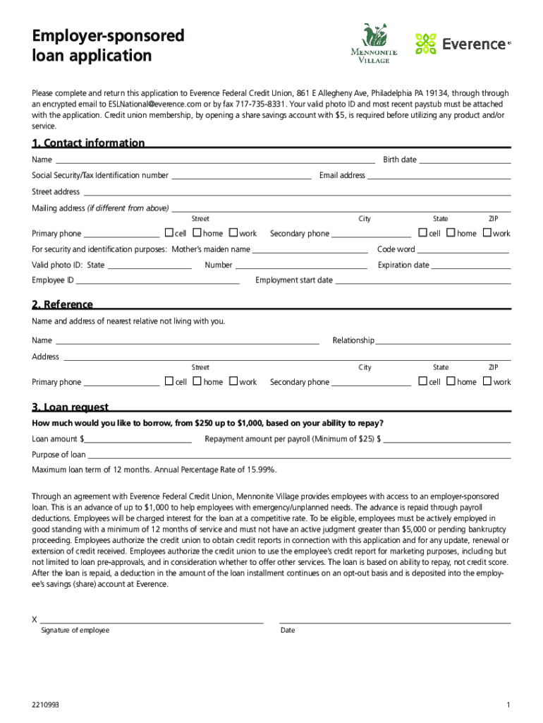 Get the free Employer-sponsored loan application - Mennonite Village