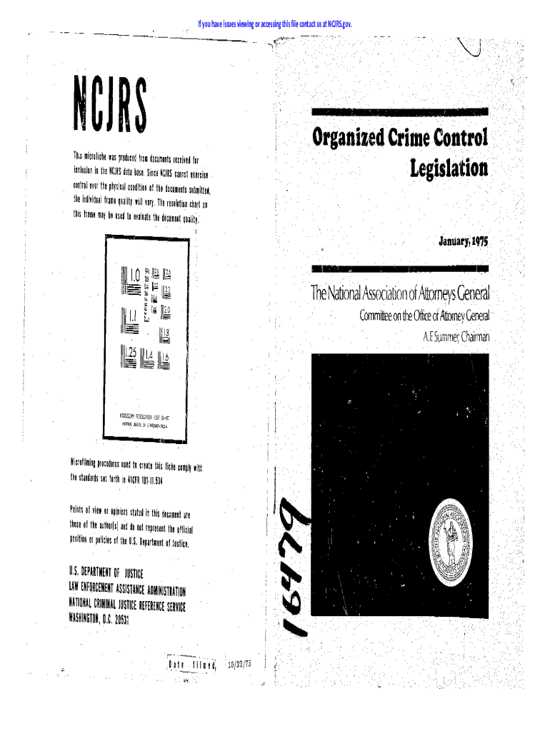 If you have issues viewing or accessing this file contact us at CARS.gov.\'!\”.\'., \'. I., I\”\'\”.(Organized Crime Control Legislations microfiche was produced from documents received for