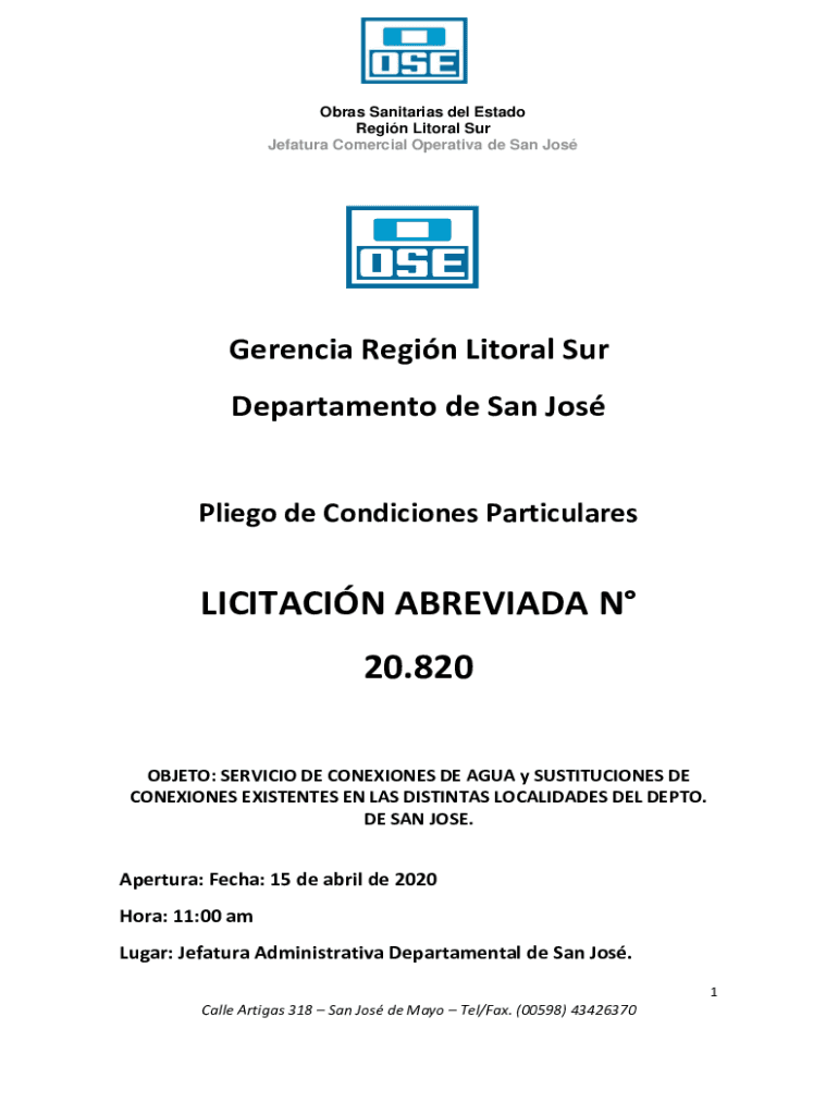 Department de San Jostling de Condiciones ParticularesLICITACIN ABBREVIATE N