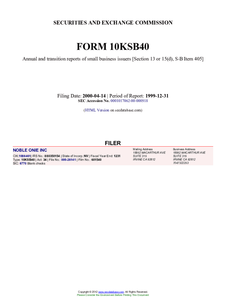 Get the free NOBLE ONIE INC (Form. Accession Number