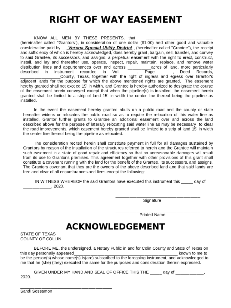 Template www.pkwatersupply.comimagesfilesRIGHT OF WAY EASEMENT (General Type Easement) instructions